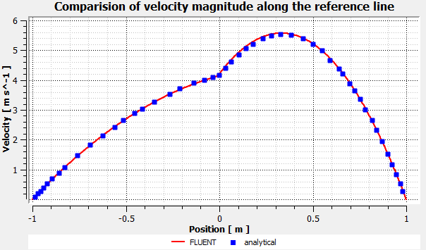 查看x=0线上速度分布,并与解析值进行对比,如下图所示。