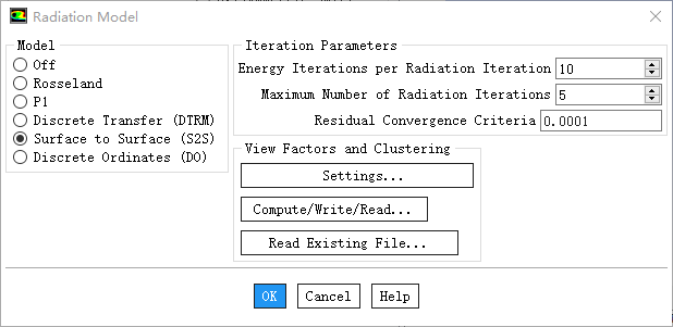 点击OK按钮关闭对话框,返回至Radiation Model对话框