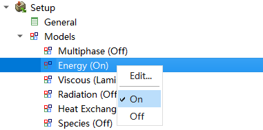 右键选择模型树节点Models > Energy,选择弹出菜单项On激活能量方程