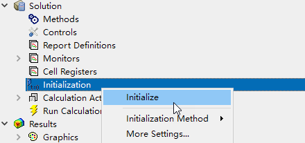 右键选择模型树节点Initialization,点击菜单项Initialize进行初始化