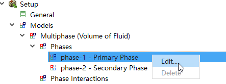 右键选择模型树节点Models > Multiphase > Phase > phase-1-Primary Phase,点击弹出菜单项Edit…打开编辑对话框