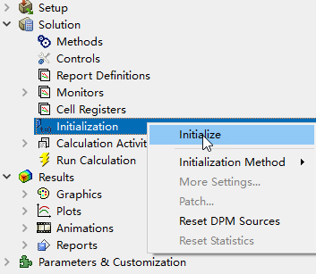 右键选择模型树节点Initialization,选择菜单Initialize进行初始化