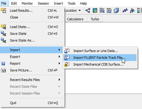 双击A6单元格进入CFD-Post,选择菜单File → Import → Import FLUENT Particle Track File…导入前面保持的颗粒文件