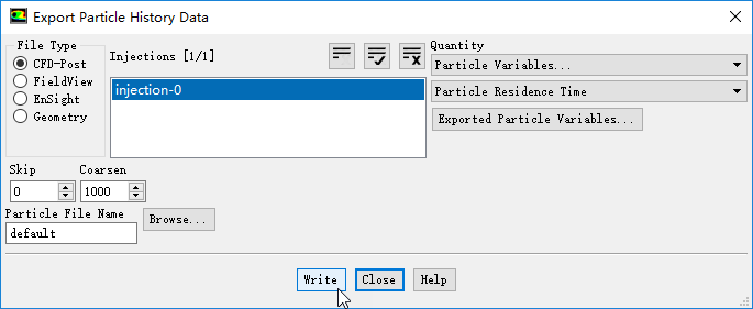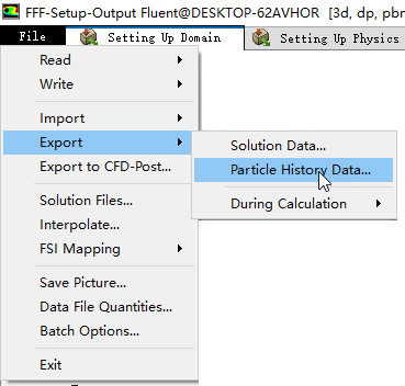 选择菜单File → Export → Particle History Data…打开颗粒数据输出对话框