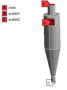 创建3个边界命名,分别为inlet、outlet1及outlet2
