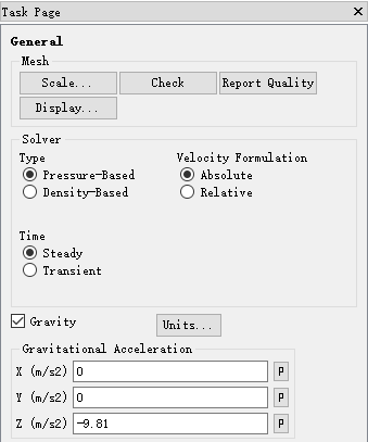 鼠标双击模型树节点General,右侧面板中激活选项Gravity