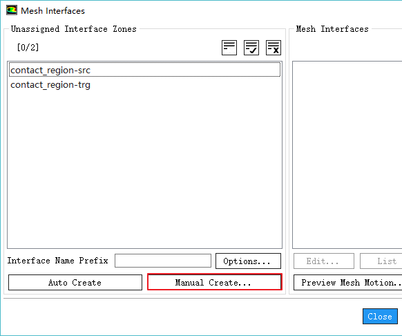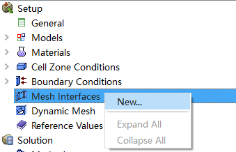 右键选择模型树节点Mesh Interfaces,点击弹出菜单项New…新建interface