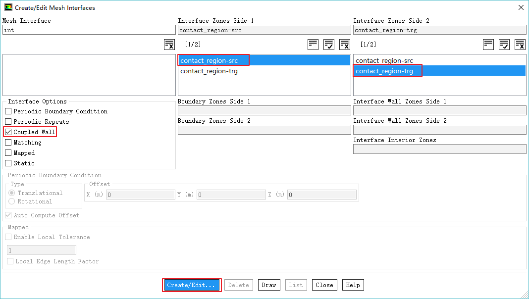 如下图所示,在弹出的对话框中选择合适的配对边界,并激活选项Coupled Wall,点击按钮Create/Edit…创建交界面