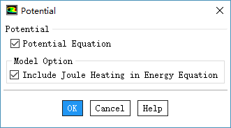 鼠标双击模型树节点Models > Electric Potential,弹出的设置对话框中激活选项Potential Equation及Include Joule Heating in Energy Equation