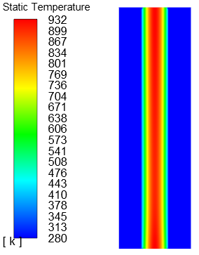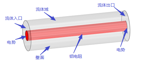 空气入口气体流速60 m/s,入口温度300 K,空气出口为自由出流。电阻直径10 mm,流体域外径30 mm,长度为100 mm。