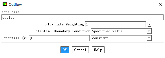 双击模型树节点Boundary Conditions > outlet,如下图所示进行设置