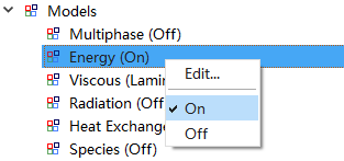 鼠标右键选择模型树节点Models > Energy,点击弹出菜单项On激活能量方程