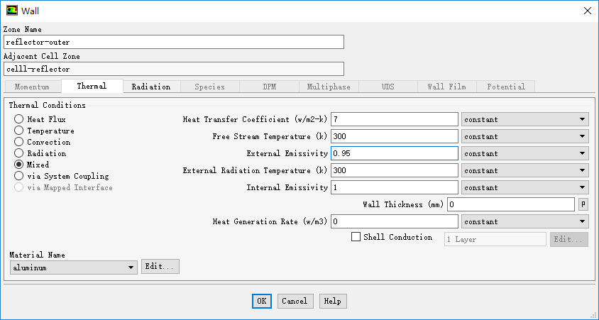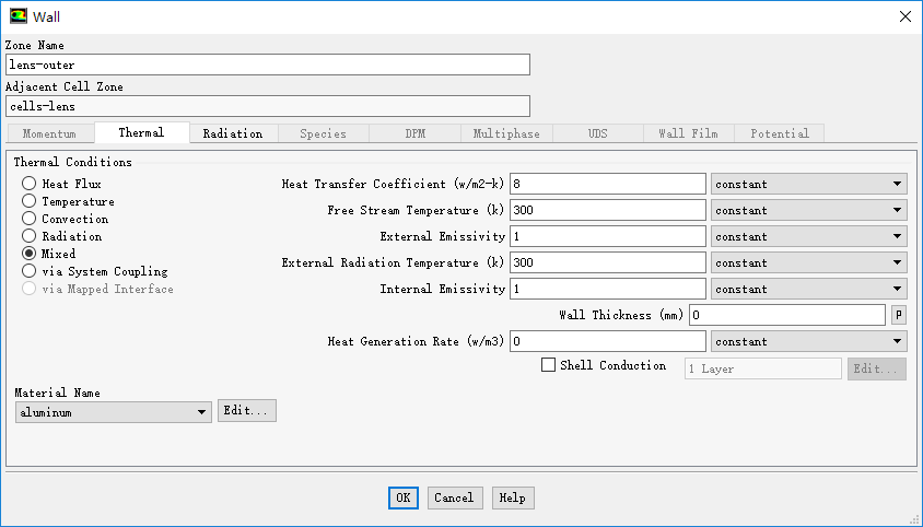 设置Thermal Conditions为Mixed