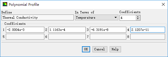 设置Thermal Conductivity为polynomial,点击后方的Edit按钮编辑参数