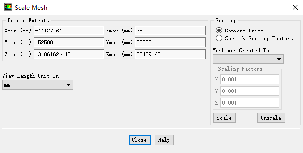 设置Mesh Was Created In为mm,点击按钮Scale进行网格缩放