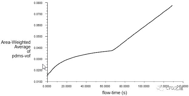 所有其他的边界都指定为大气压力条件。模拟中指定主相为空气,第二相为PDMS。采用Patch指定PDMS初始半径为0.0036 m。