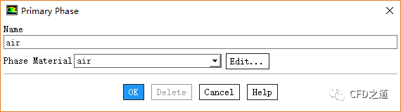 鼠标双击模型树节点Models > Multiphase > Phase > phase-1-Primary Phase,设置主相为air,如下图所示