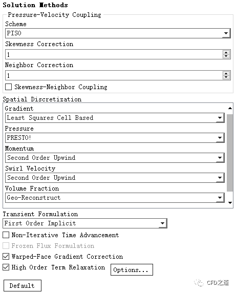 鼠标双击模型树节点Solution > Methods,右侧面板如下图所示设置