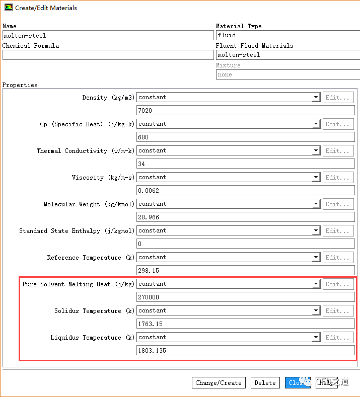 修改Mushy Zone Parameter为1e6,如下图所示,继续计算100步,计算完毕后保存case及data文件(steel-4.cas.gz and steel-4.dat.gz)