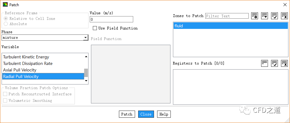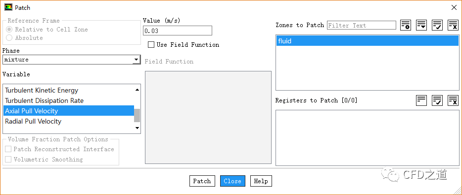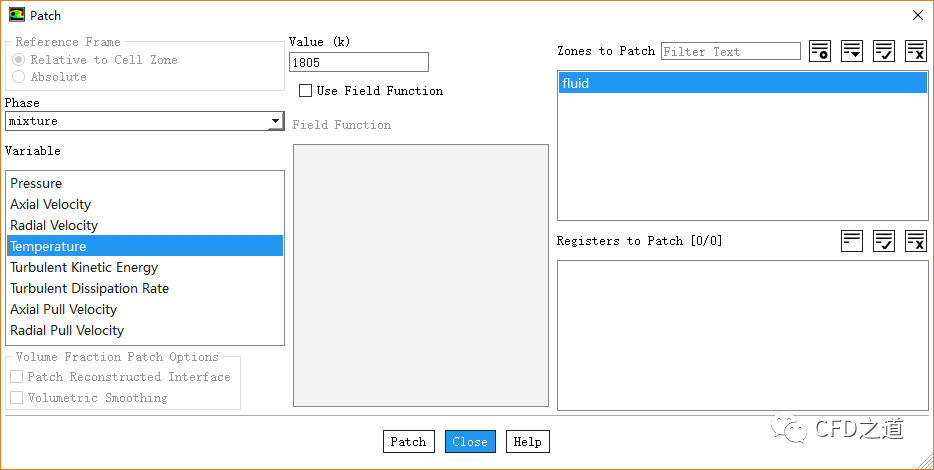 双击模型树节点Initialization,点击 右侧面板按钮Patch打开设置对话框