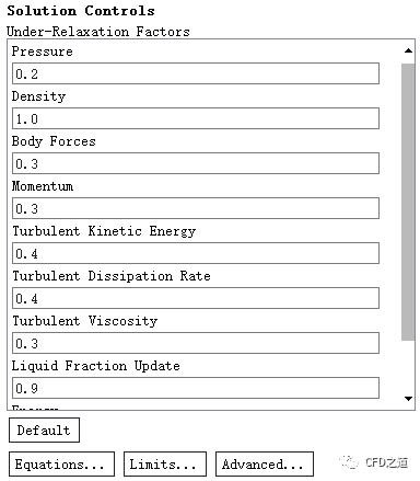双击模型树节点Solution > Controls,右侧面板设置亚松弛因子,如下图所示