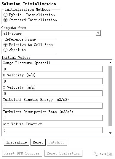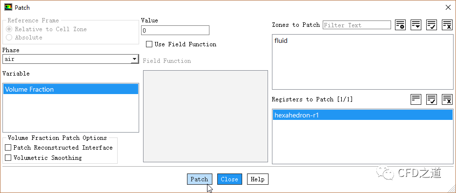 点击Patch...按钮,设置前面Mark的区域air相体积分数为0