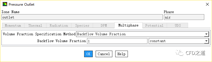 切换至Multiphase标签页,设置Backflow Volume Fraction为1