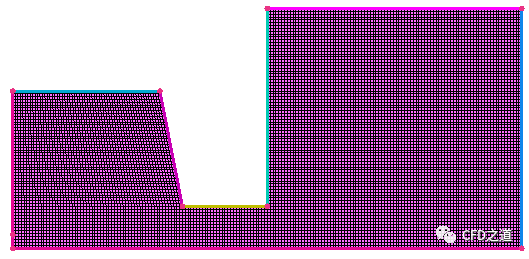 案例如下图所示。左侧水相在重力驱动下向右侧流动。计算网格如下图所示。