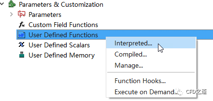 右键选择模型树节点Parameters & Customization > User Defined Functions,点击弹出菜单项Interpreted...打开UDF解释对话框