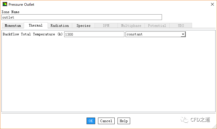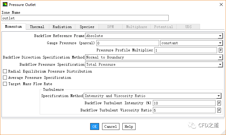 鼠标双击模型树节点Boundary Conditions >outlet,弹出边界设置对话框