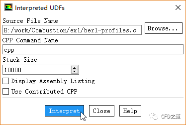 点击Browse...按钮加载UDF文件berl-profiles.c,点击按钮Interpret解释UDF源文件