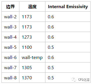 与此设置相同,其他壁面边界条件如表所示。