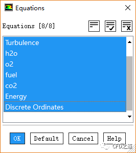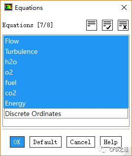 点击按钮Equations...,弹出对话框中取消选择Discrete Ordinates,点击OK按钮关闭对话框