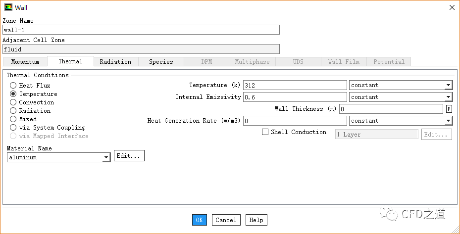 切换至Thermal标签页,设置Temperature为312 K