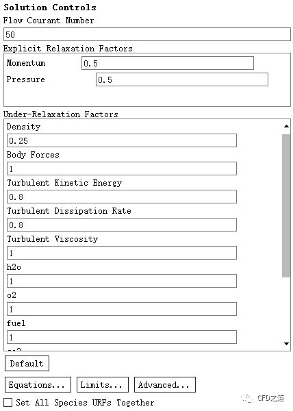 鼠标双击模型树节点Solution > Controls,右侧面板中设置Flow Courant Number为50