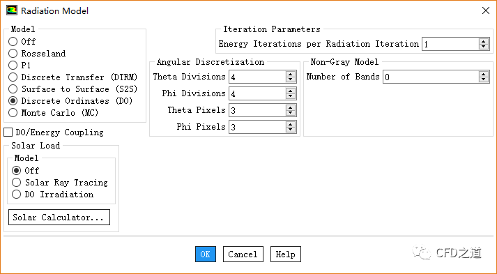 双击模型树节点Models > Radiation弹出辐射设置对话框