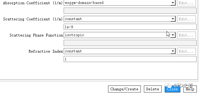 点击按钮Change/Create修改材料参数,点击Close按钮关闭对话框