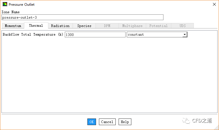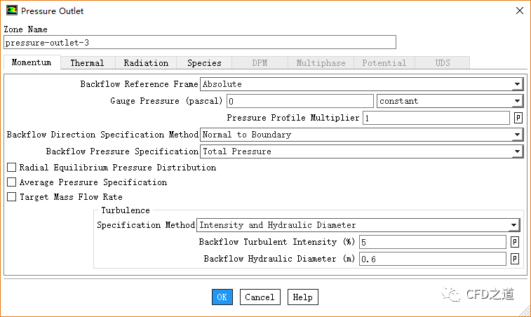 鼠标双击模型树节点Boundary Conditions >pressure-outlet-3,弹出边界设置对话框