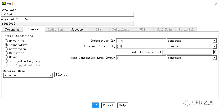 切换至Thermal标签页,设置Thermal Condtions为Temperature
