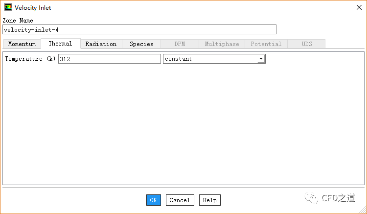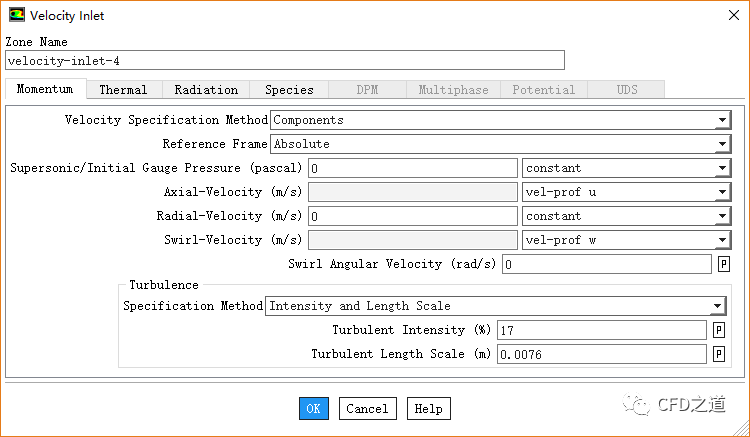 鼠标双击模型树节点Boundary Conditions >velocity-inlet-4,弹出边界设置对话框