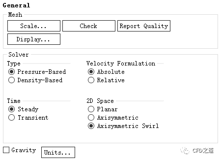 设置2D Space为Axisymmetric Swirl,其他选项保持默认设置