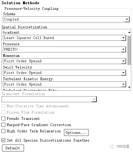 选择湍流化学反应作用模型为Finite-Rate/Eddy-Dissipation