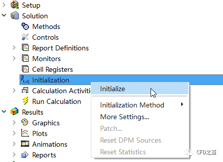 右键选择模型树节点Solution > Initialization,点击弹出菜单项Initialize进行初始化