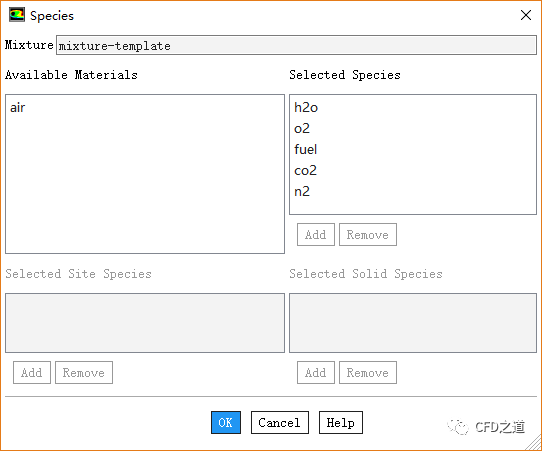 如下图所示设置组分,确保氮气(n2)位于列表的最下方,点击OK按钮关闭对话框