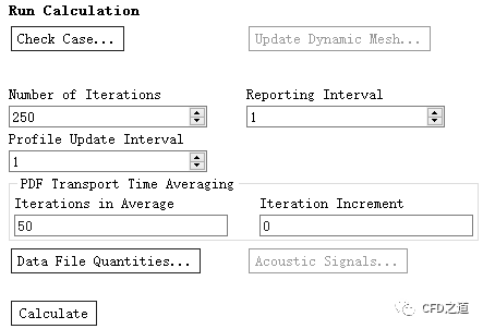 鼠标双击模型树节点Solution > Run Calculation,右侧面板中设置Number of Iterations为250