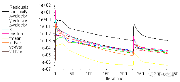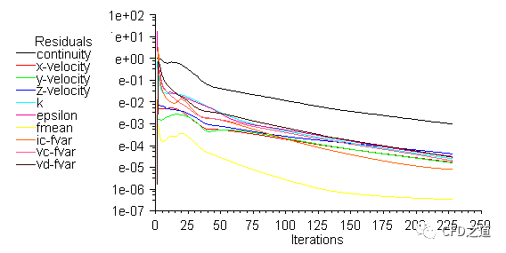 鼠标双击模型树节点Solution > Run Calculation,右侧面板中设置Number of Iterations为250,点击按钮Calculate进行计算