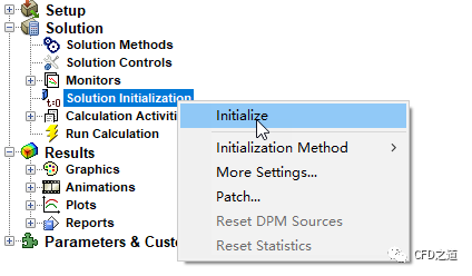右键选择模型树节点Solution > Initialization,选择弹出菜单项Initialize进行初始化