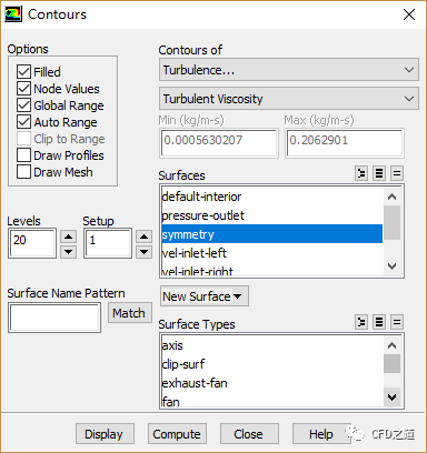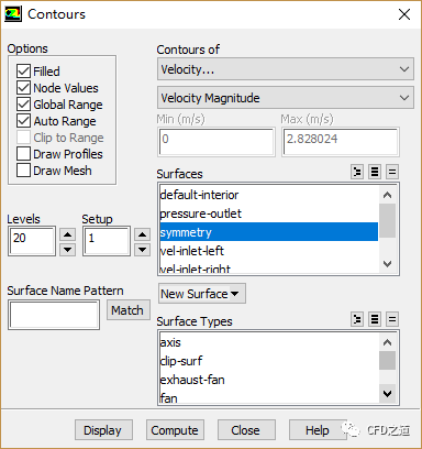 鼠标双击模型树节点Results > Contours,弹出对话框中按下图所示设置