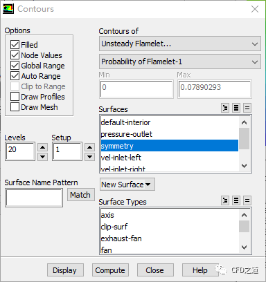 查看Probability of Flamelet-1,如下图所示,可看到最大值约为0.02,可认为计算达到收敛,此时可以进行后处理