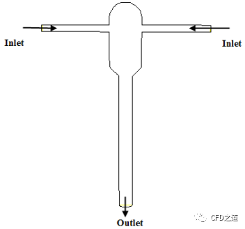 第一个反应非常快,而第二个反应则非常慢。当激活liquid micro-mixing model时,ANSYS Fluent假设反应活化能非常小,因此反应在组分混合后能够瞬间完成。案例示意图如下图所示。